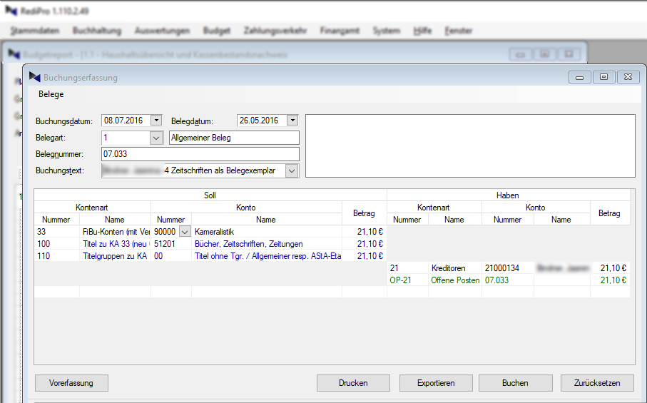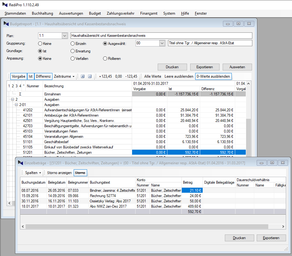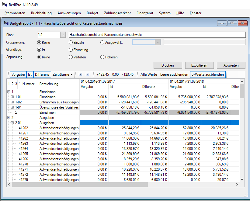 Ein kaufmännischer Kontenplan (und wenn Sie wollten, neben der kameralistischen auch eine doppelte Buchführung) ist auf Wunsch in wenigen Sekunden implementiert. Auch im laufenden Betrieb ist dies jederzeit ohne Systemwechsel oder Unterbrechungen möglich.