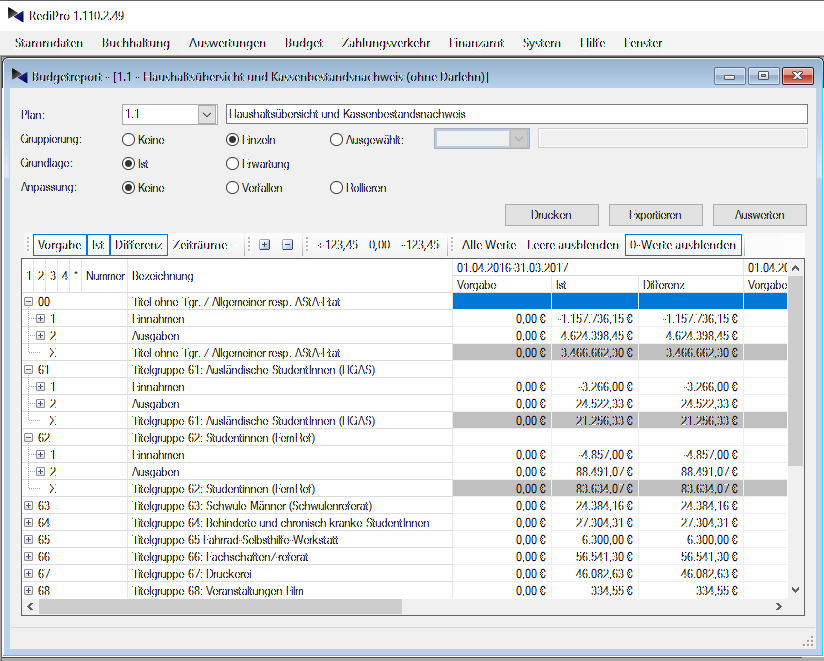 RediPro ermöglicht es Neben dem klassischen Soll-Ist-Vergleich auch eine automatisierte Vorschau zu implementieren. Auf diese Weise kann es praktisch nie wieder vorkommen, dass man Haushaltsmittel mehrfach disponiert oder es versäumt mögliche zweckmäßige Ausgaben noch rechtzeitig vor dem Verfall der Mittel vorzunehmen. Die Auswertungen können beliebig konfiguriert werden und haben eine unbegrenzte Verschachtelungstiefe. Alle Daten aus den Budget-Forecast-Auswertungen können aus Excel-Tabellen direkt aus der Datenbank abgerufen werden. (Mehr zum Excel-AddIn hier.)