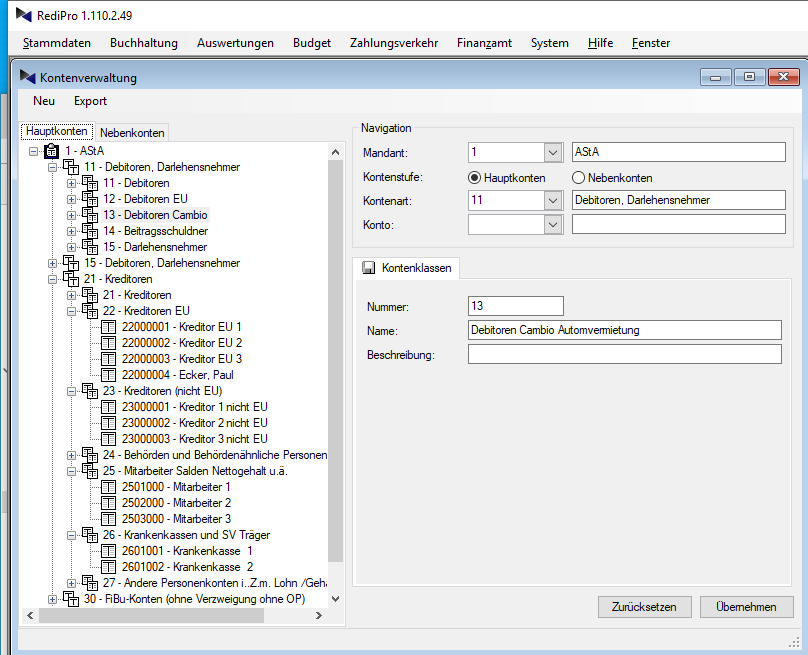 Debitoren (Kunden, Kreditoren (Lieferanten) und beliebige anderer Arten von Kontokorrentkonten sind blitzschnell eingerichtet.