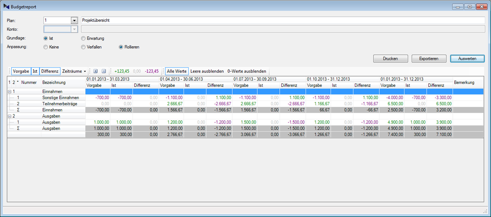 Als Planungsgröße stehen die Vorschaufunktionen des Dynamic Accounting© zur Verfügung - für ein echtes Forecastíng, also eine Vorausschau.